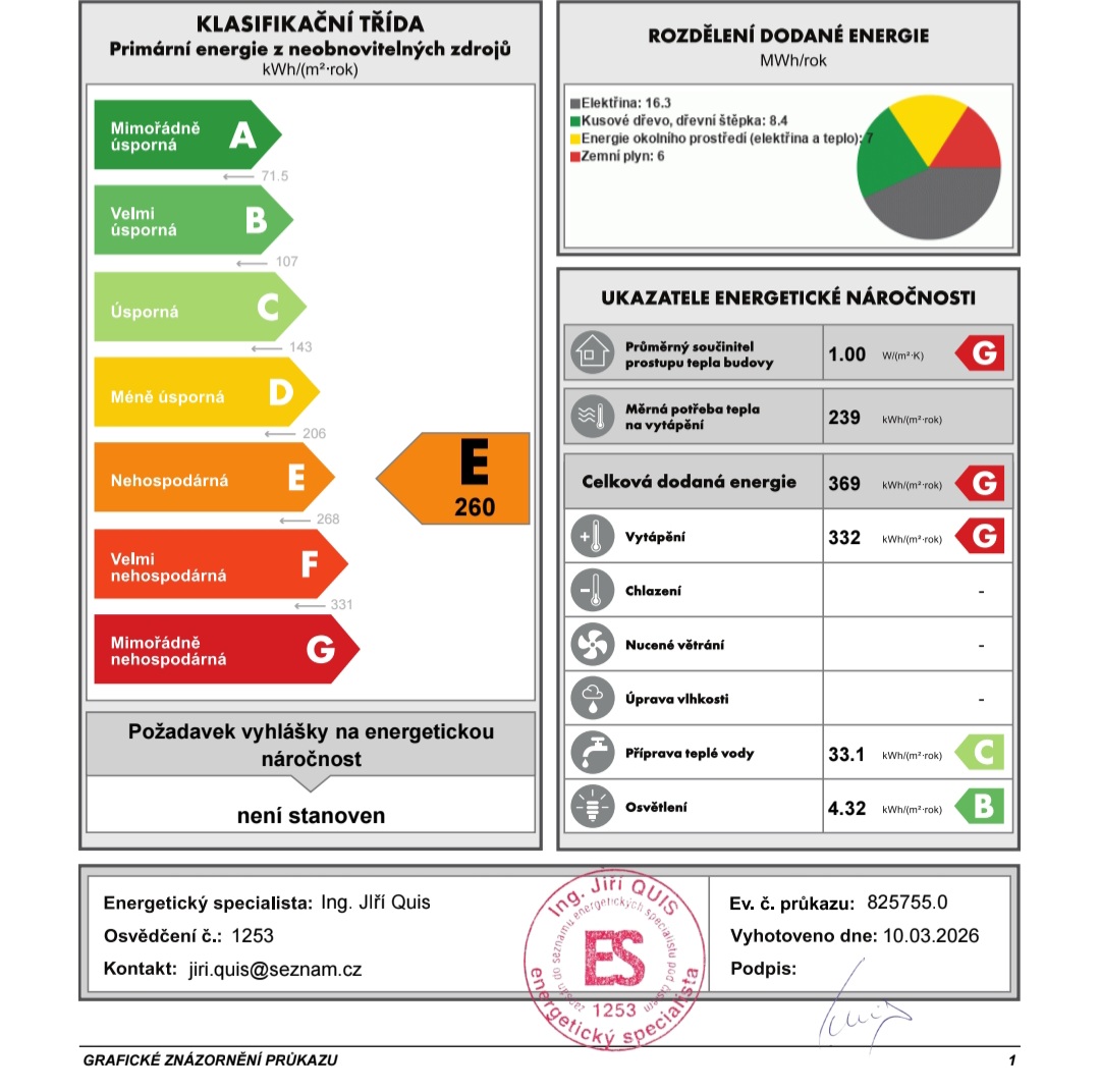 | Ukazatel ENB | 260 kWh/m2 za rok |
